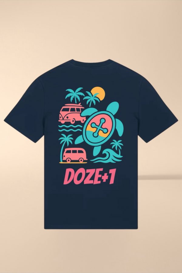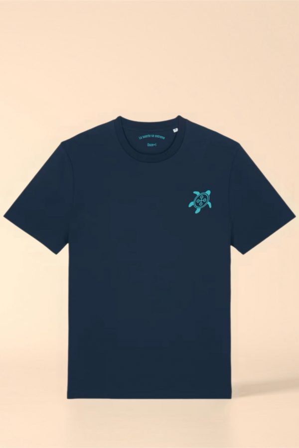 Confeccionada en algodón orgánico de alta calidad, en su forma más pura y con un peso de 180GSM, presenta nuestro logo original de la tortuga —con el icónico botón en el caparazón— en azul turquesa, un contraste que destaca sin gritar.