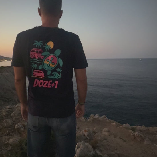 Confeccionada en algodón orgánico de alta calidad, en su forma más pura y con un peso de 180GSM, presenta nuestro logo original de la tortuga —con el icónico botón en el caparazón— en azul turquesa, un contraste que destaca sin gritar.