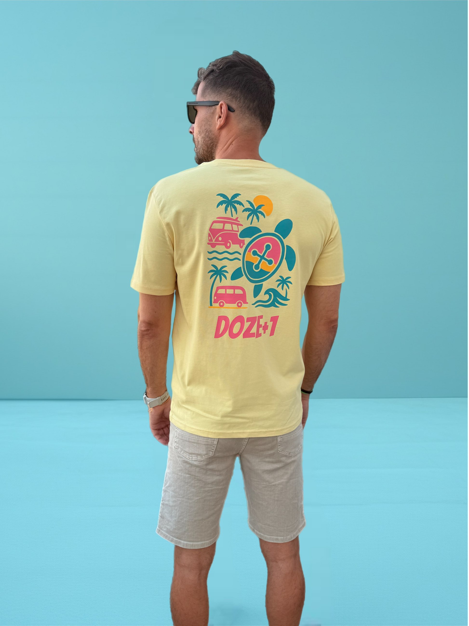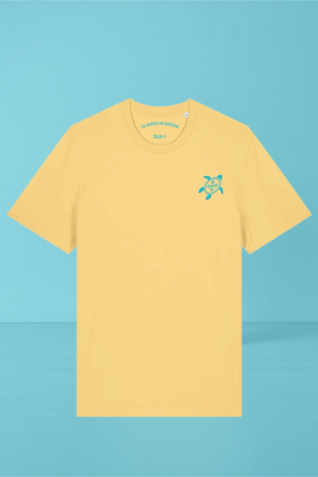 Confeccionada en algodón orgánico de alta calidad, en su forma más pura y con un peso de 180GSM, presenta nuestro logo original de la tortuga —con el icónico botón en el caparazón— en azul turquesa, un contraste que destaca sin gritar.